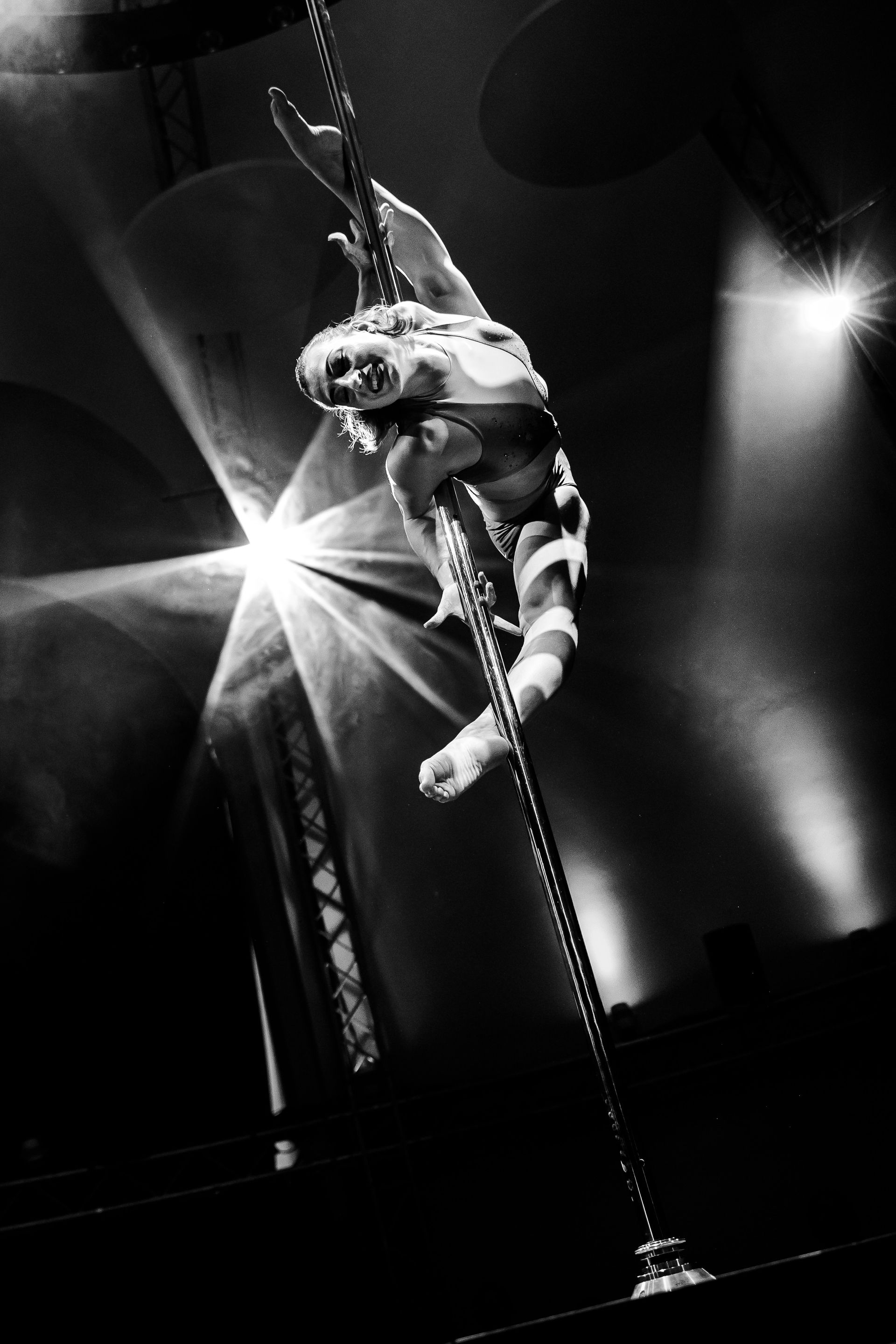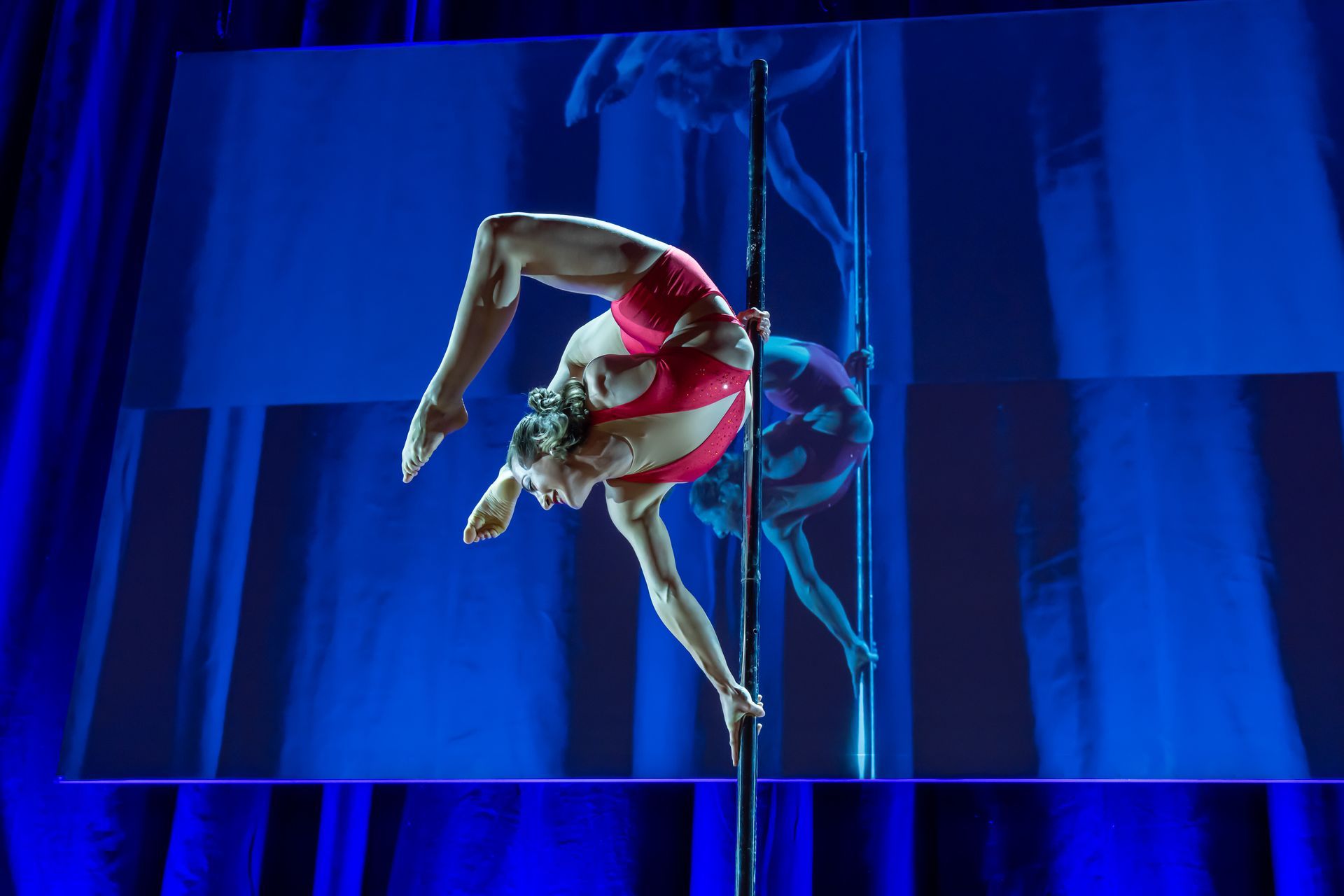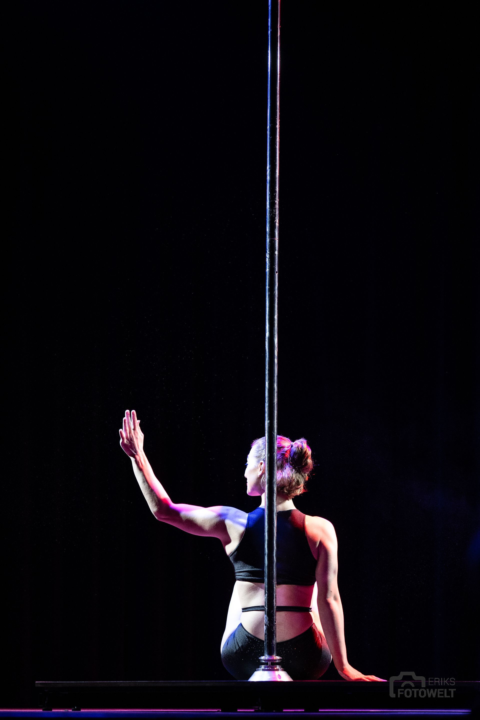 In meiner Vertikal Pole-Darbietung bringe ich eine Mischung aus Tanz und Akrobatik auf die Bühne. Dies bringt das Publikum in die Situation eines emotionalen Wechselspiels, indem es sich mit bewegen und in der nächsten Sekunde Staunen möchte